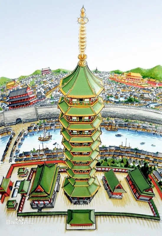 中世纪世界七大奇迹之一,南京大报恩寺琉璃宝塔。世界塔文化经典。