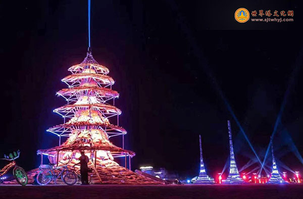2019年8月,一个美术馆团队携装置作品(幻·Tulpa Ashrams)和花车(鸱吻Vigorous Spirit)参与了今年的火人节(Metamorphoses)。