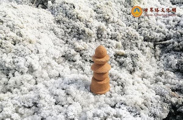 心怀天下,祈福吉祥。五轮香塔曼荼罗传承。山西运城盐湖风景区,奇妙结晶的雪白盐硝上的五轮塔香。南无大日如来!
