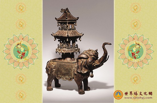 铜制大象驼宝塔精美艺术造型 世界塔文化博览
