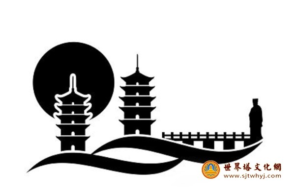 双塔标识设计欣赏。元素主体,曜日、人物、小桥、山水譬喻。